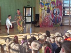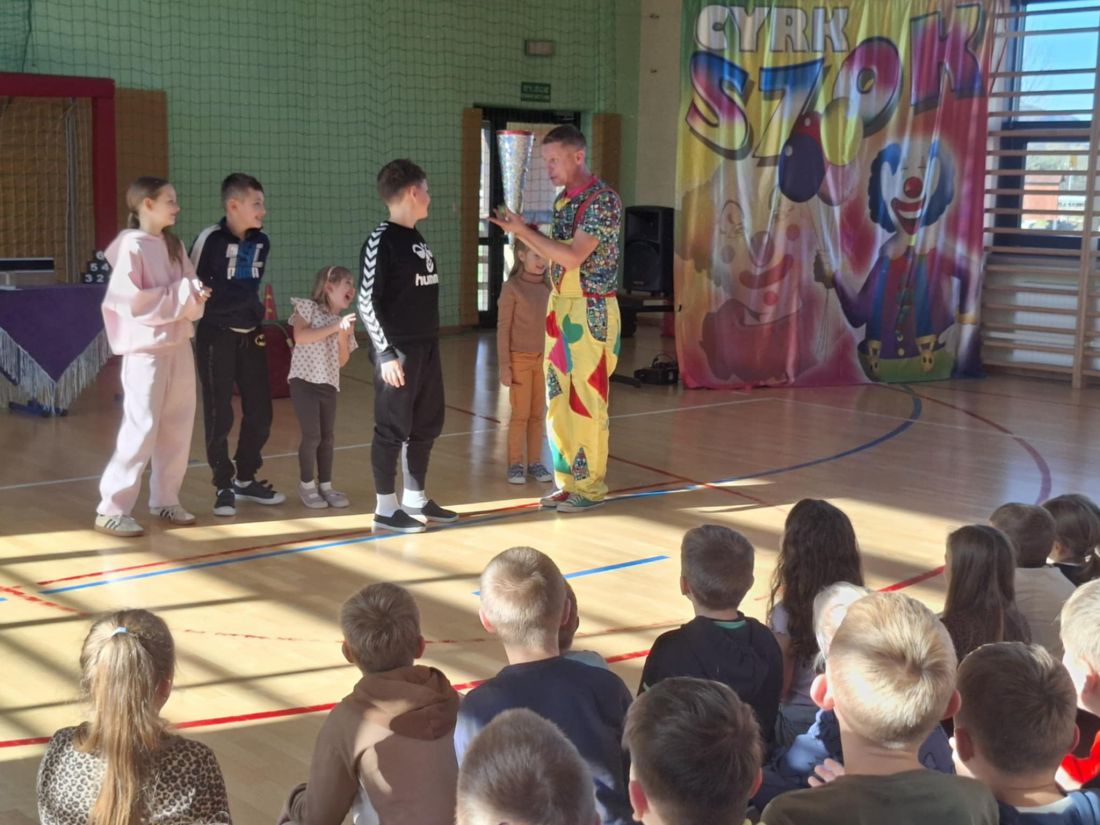 6 listopada 2025 roku naszą szkołę odwiedził Cyrk „Szok”, który przygotował dla uczniów niezwykły pokaz pełen emocji, śmiechu i dobrej zabawy. Artyści zaprezentowali zapierające dech w piersiach akrobacje, popisy żonglerki i zabawne sztuczki cyrkowe. Najwięcej emocji wzbudził występ ze zwierzętami, w tym spotkanie z prawdziwym wężem, które dostarczyło wszystkim niezapomnianych wrażeń! Występy artystów przeplatane były humorem i muzyką, a uczniowie z radością reagowali na każdy pokaz, nagradzając cyrkowców gromkimi brawami.