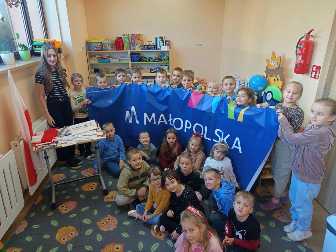 6 listopada 2025 roku, w naszej szkole odbyły się warsztaty patriotyczne dla uczniów klasy 0 i 1, które poprowadziła pani Aneta Faron ze Starostwa Powiatowego w Limanowej w ramach realizacji zadania publicznego pn. „Dbamy o Polskę w Powiecie Limanowskim – edycja 2025”. Spotkanie zostało przeprowadzone w ramach Akademii Małego Patrioty i miało na celu rozwijanie oraz utrwalanie wśród najmłodszych uczniów wiedzy o Ojczyźnie, symbolach narodowych i historii Polski.