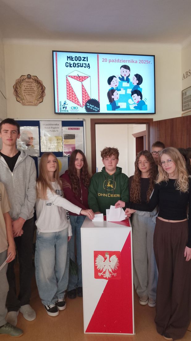 20 października 2025 r., w naszej szkole odbyły się wybory do Samorządu Uczniowskiego. Poprzedziła je intensywna kampania wyborcza, podczas której kandydaci prezentowali wiele interesujących pomysłów i inicjatyw. Prezentacje i ciekawe hasła sprawiły, że szkolne korytarze tętniły wyborczą energią, a uczniowie z zaangażowaniem śledzili przebieg kampanii.