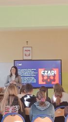 W piątek, 16 stycznia 2026 r., pani Joanna Piórkowska, pracownik Powiatowej Stacji Sanitarno-Epidemiologicznej w Limanowej, specjalista ds. Zdrowia Publicznego i Promocji Zdrowia, przeprowadziła spotkanie edukacyjne z uczniami klas VII i VIII. Tematem zajęć była „Profilaktyka uzależnień od nikotyny – papierosy i e-papierosy”.