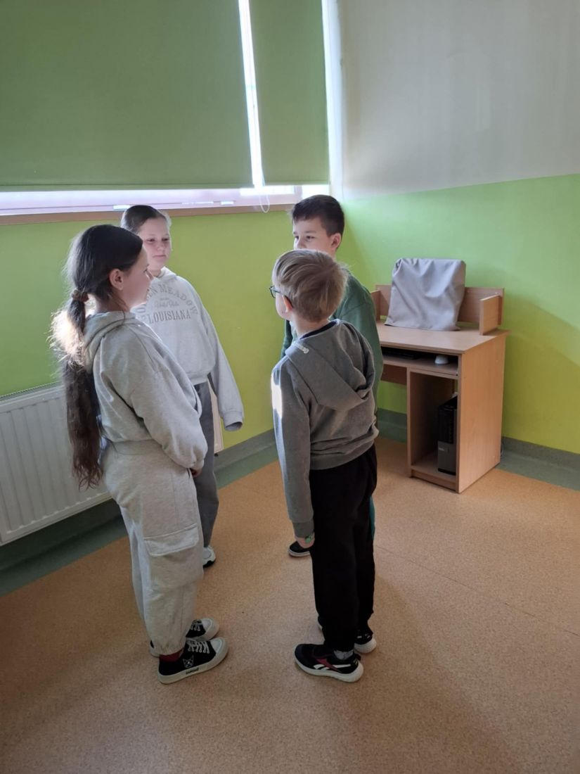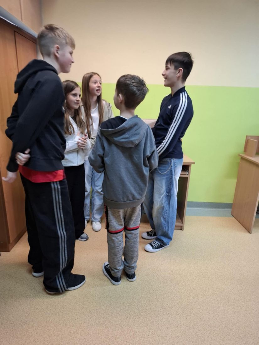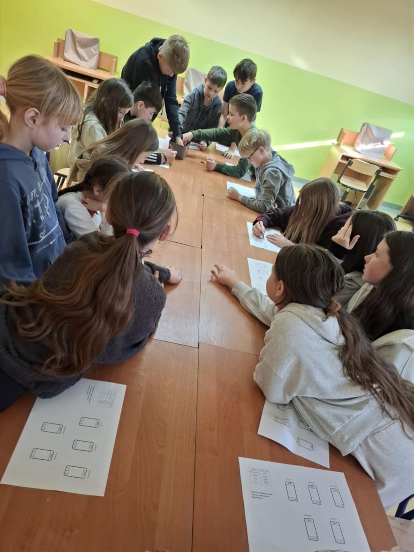 Ostatnimi grupami byli uczniowie klasy IV i VI, którzy realizowali temat: „Halo! Lubię! Fonoholizm!”. Podczas zajęć uczniowie wykonywali ćwiczenie polegające na dokończeniu historyjki według własnego pomysłu, opisującej świat, w którym nagle zabrakło Internetu. Zadanie to pozwoliło uczniom uświadomić sobie, jak dużą rolę Internet odgrywa w ich codziennym funkcjonowaniu i że czasem może zajmować zbyt ważne miejsce w ich życiu. Omówiono również szkodliwość nadmiernego korzystania z Internetu, konieczność stawiania granic oraz wartość równowagi między światem online a realnymi relacjami. Uczniowie wypełniali karty pracy dotyczące częstotliwości korzystania z różnych aplikacji, co sprzyjało refleksji nad własnymi nawykami cyfrowymi.