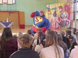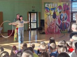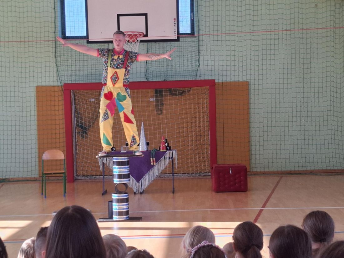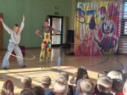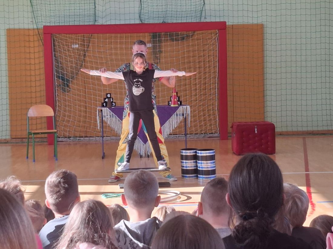6 listopada 2025 roku naszą szkołę odwiedził Cyrk „Szok”, który przygotował dla uczniów niezwykły pokaz pełen emocji, śmiechu i dobrej zabawy. Artyści zaprezentowali zapierające dech w piersiach akrobacje, popisy żonglerki i zabawne sztuczki cyrkowe. Najwięcej emocji wzbudził występ ze zwierzętami, w tym spotkanie z prawdziwym wężem, które dostarczyło wszystkim niezapomnianych wrażeń! Występy artystów przeplatane były humorem i muzyką, a uczniowie z radością reagowali na każdy pokaz, nagradzając cyrkowców gromkimi brawami.