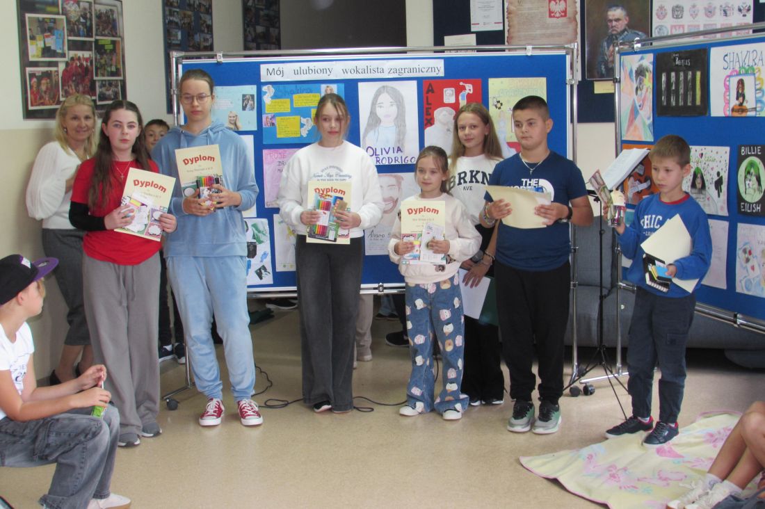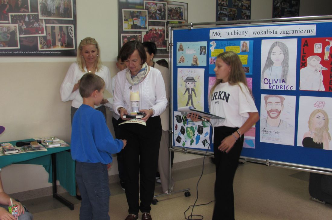 Podczas uroczystości odbyło się również rozstrzygnięcie konkursu plastycznego pt. "Mój ulubiony wykonawca zagraniczny", w którym uczniowie mieli okazję wyrazić swoją kreatywność i pomysłowość, łącząc sztukę plastyczną z tematyką językową. Najlepsze prace uczniów zostały nagrodzone i byli to: