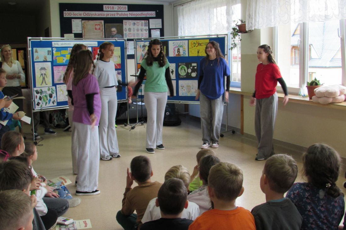 Dnia 26 września w naszej szkole obchodziliśmy Europejski Dzień Języków Obcych. Z tej okazji uczniowie klas V i VII przygotowali część artystyczną, która miała na celu pokazanie, jak ważna jest nauka języków obcych w dzisiejszym świecie. W programie znalazł się m.in. skecz pełen humoru, ale i wartościowego przesłania – przypomniał on, że znajomość języków ułatwia podróżowanie, poznawanie innych kultur oraz rozwija umiejętności komunikacyjne, które mogą przydać się w przyszłości zawodowej i osobistej.