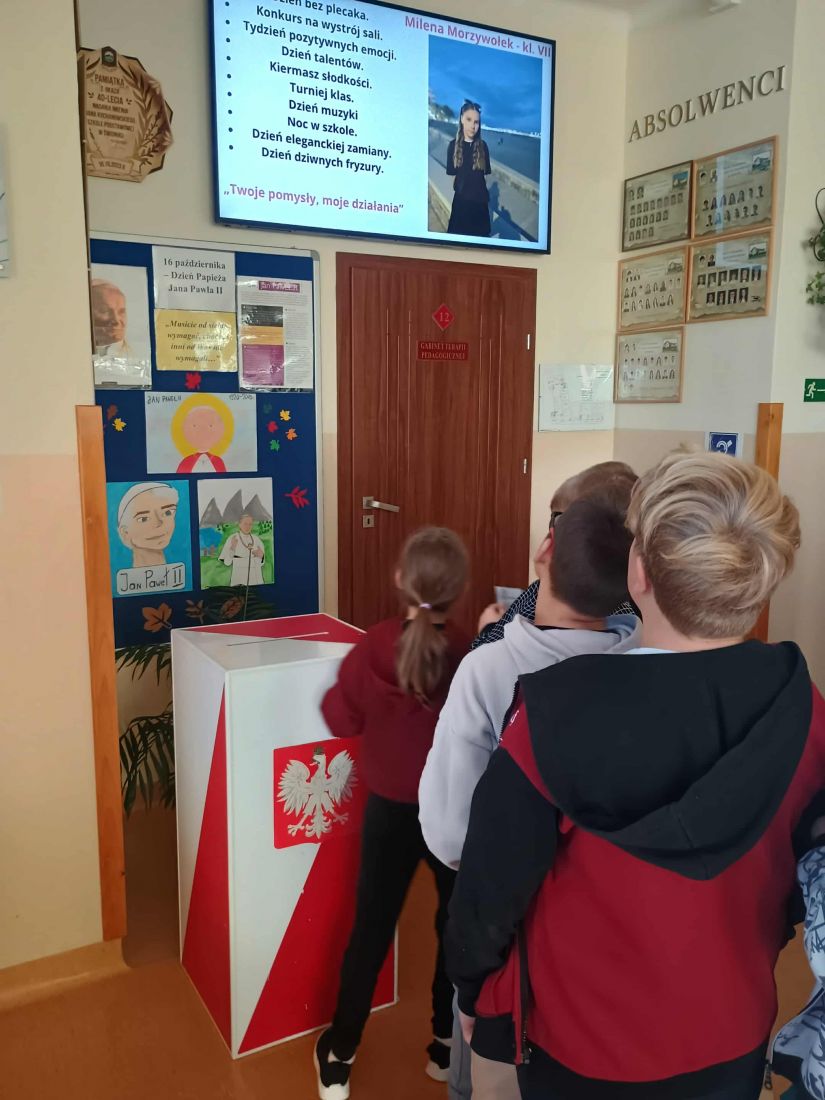 20 października 2025 r., w naszej szkole odbyły się wybory do Samorządu Uczniowskiego. Poprzedziła je intensywna kampania wyborcza, podczas której kandydaci prezentowali wiele interesujących pomysłów i inicjatyw. Prezentacje i ciekawe hasła sprawiły, że szkolne korytarze tętniły wyborczą energią, a uczniowie z zaangażowaniem śledzili przebieg kampanii.