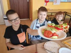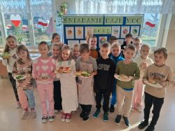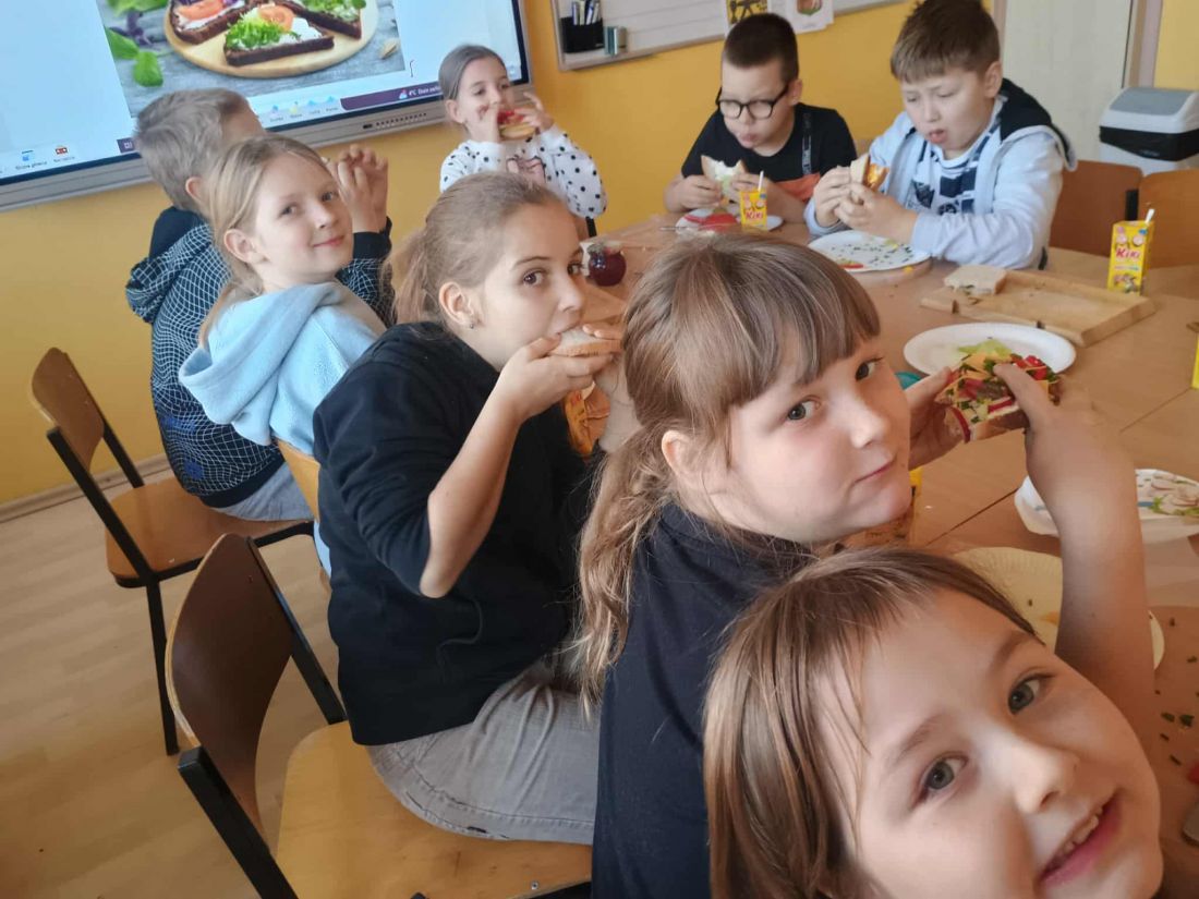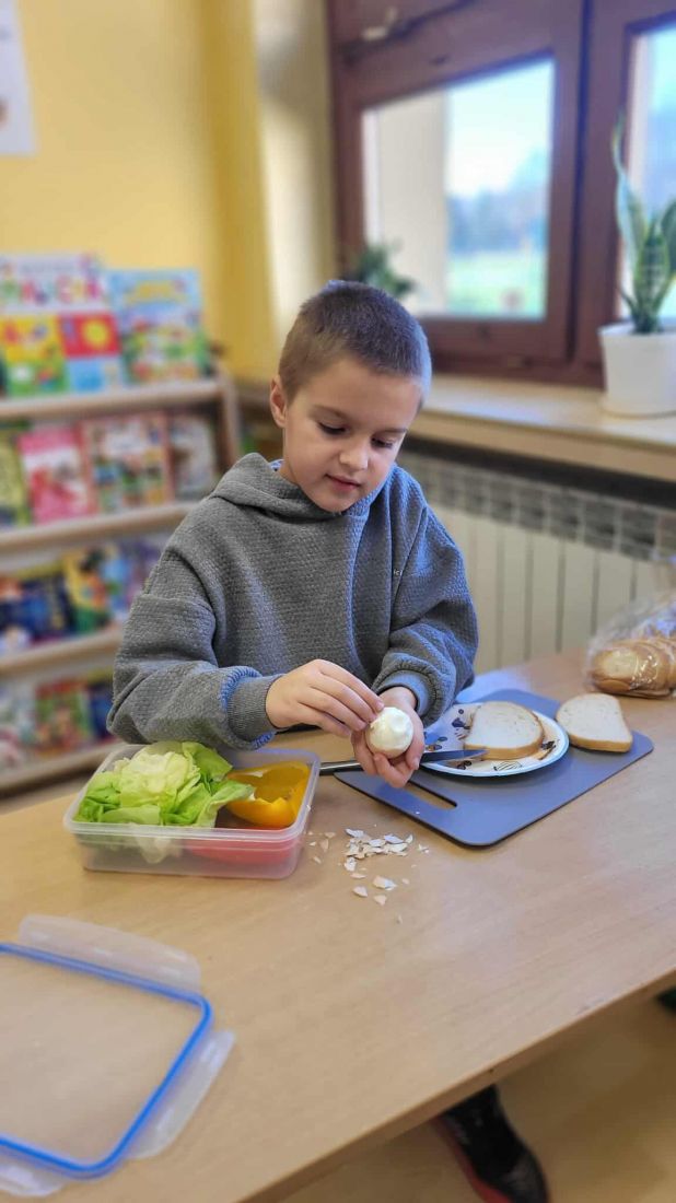 14 listopada 2025 roku w naszej szkole odbyła się specjalna akcja edukacyjna dla uczniów klas 0–3 pod hasłem „Śniadanie daje moc”. Celem wydarzenia było uświadomienie dzieciom, jak ważną rolę w codziennym funkcjonowaniu odgrywa zdrowe i pełnowartościowe śniadanie. Na początku zajęć uczniowie spotkali się z panią pielęgniarką i wysłuchali krótkiej pogadanki na temat zasad prawidłowego odżywiania. Poznali najważniejsze grupy produktów oraz dowiedzieli się, w jaki sposób wpływają one na energię, koncentrację i dobre samopoczucie w ciągu dnia. Następnie dzieci przystąpiły do praktycznej części zajęć. Każdy uczeń przyniósł ze sobą zdrowe produkty – warzywa, owoce, pełnoziarniste pieczywo i nabiał. Z wykorzystaniem tych składników uczniowie samodzielnie przygotowywali swoje śniadania, komponując kolorowe i wartościowe kanapki. Była to świetna okazja do rozwijania samodzielności, kreatywności i umiejętności współpracy. W klasach panowała radosna atmosfera, a dzieci z dużym zaangażowaniem uczestniczyły w całej akcji. Wspólne przygotowywanie posiłku nie tylko uświadomiło im, jak ważne jest zdrowe jedzenie, ale także pokazało, że przygotowanie wartościowego śniadania może być proste i przyjemne. Było to bardzo udane wydarzeniem, które połączyło naukę z praktyką i dobrą zabawą. Uczniowie zdobyli cenną wiedzę, a jednocześnie nauczyli się dbać o siebie i swoje codzienne nawyki żywieniowe. To ważny krok w kierunku kształtowania zdrowego stylu życia już od najmłodszych lat.