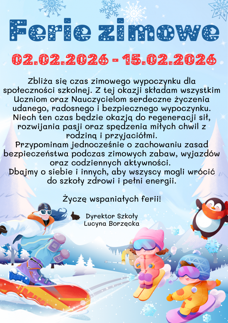 Życzenia Dyrektora Szkoły na ferie zimowe